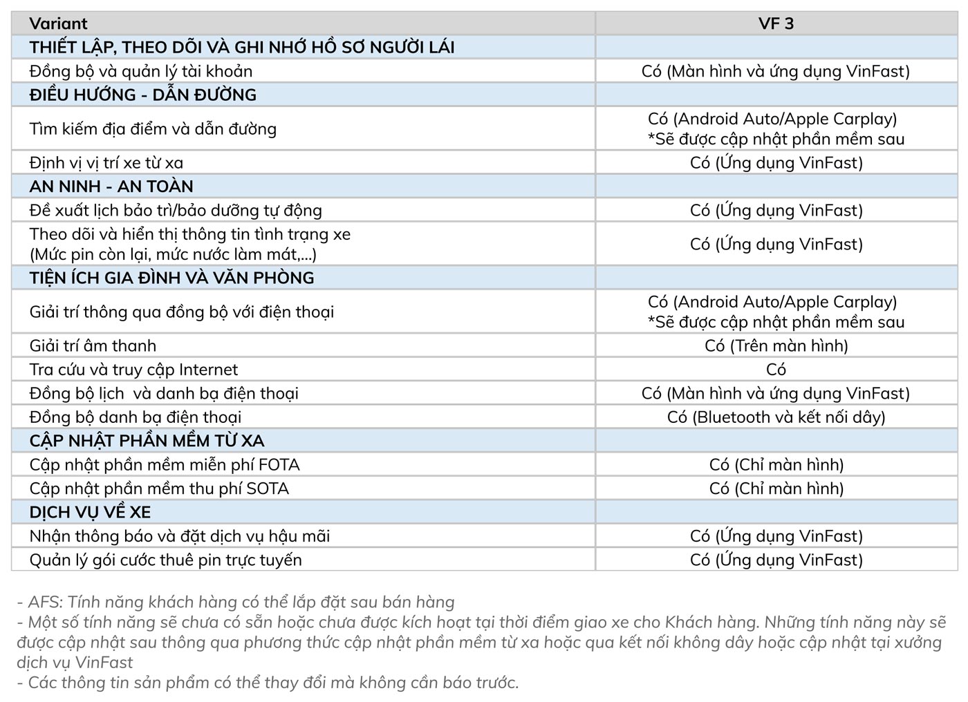 Bảng thông sô kỹ thuật xe ô tô VinFast VF 3.